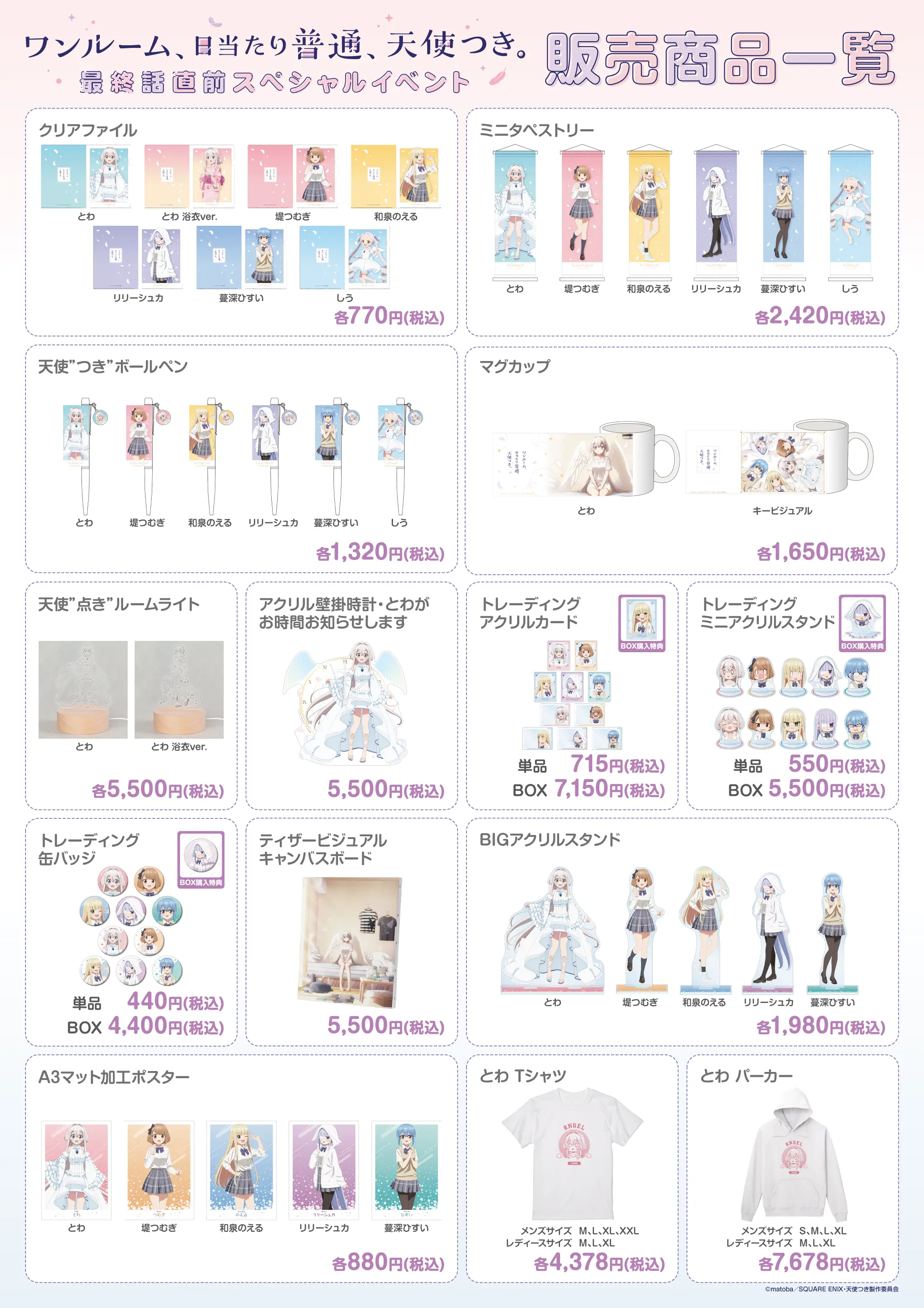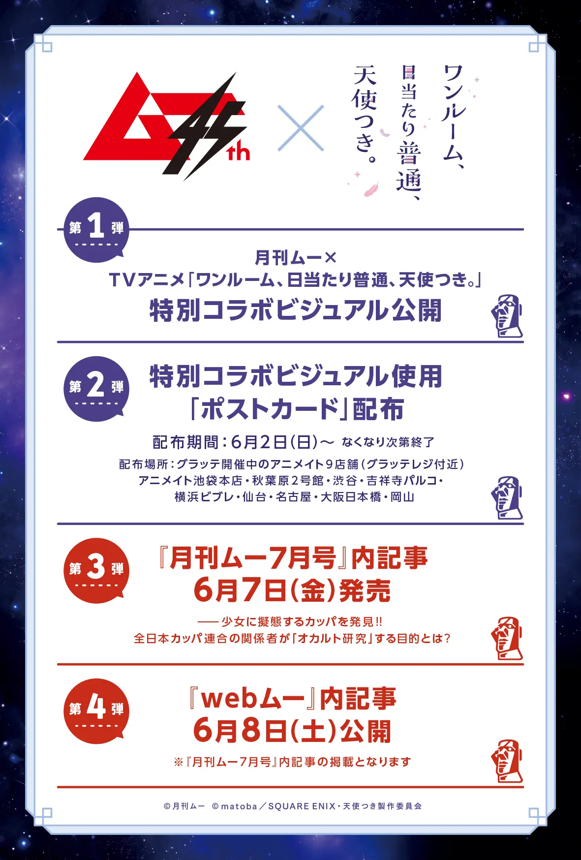 6月22日(土)に開催する、TVアニメ「ワンルーム、日当たり普通、天使つき。」最終話直前スペシャルイベント、本日より一般販売を開始しました! スペシャルな来場プレゼントとして、 イベント描き下ろしビジュアルに加え、新規描き下ろしビジュアルを使用した「ポストカード2種セット」もご用意しております。 皆さまをお待ちしています!